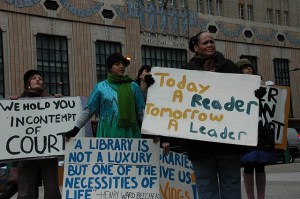 What ultimately stopped the eleven libraries from closing, was the combination of CSL’s short term demands along with its long term vision and popular organizing strategy targeting multiple pressure points. The Coalition accurately assessed the moment and turned widespread anger around the budget cuts into an organized power base; we helped file a lawsuit against the City and organized turnout at legal hearings; and we seriously prepared for a library takeover in the event that the lawsuit failed. Together, the CSL implemented a successful model of crisis-response organizing, by channeling popular outrage into a strong, unified cross-neighborhood force that framed the debate in terms of economic and racial inequity.